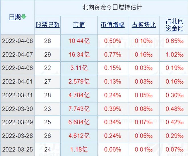 3月16日金融委會議召開後,銀行板塊反應尤為強烈,一轉形勢幾乎呈直線回升。僅4月7日一天,北向資金增持29只銀行股,增持市值16.34億元,市值增幅0.77%。自3月24日起,北向資金已連續9天增持銀行股,持股總市值增加155.59億元,增幅達8.08%。截至4月7日,北向資金總持股35只,總市值達2104.89億元。