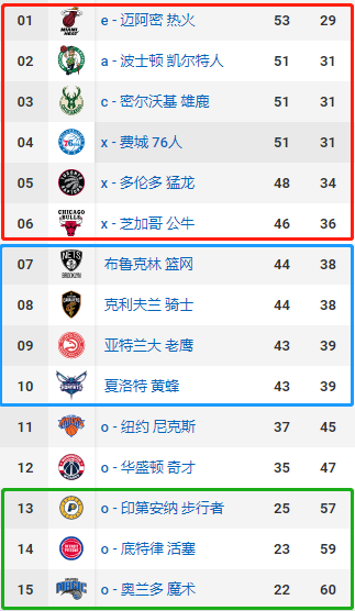 費城51勝31負,東部第四;活塞23勝59負,東部倒數第二。