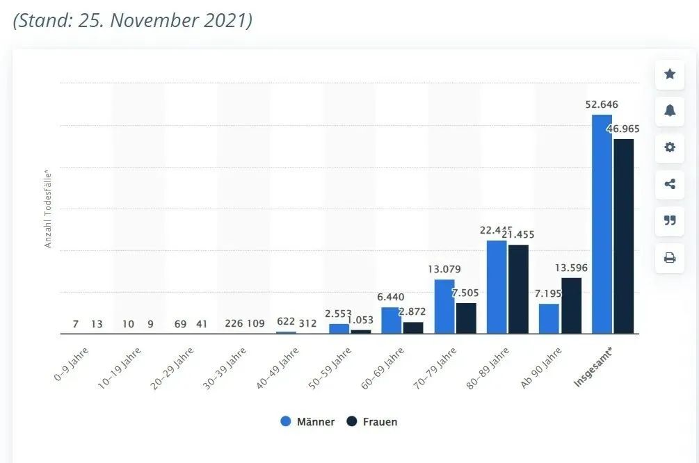 截至去年11月底,德國統計的新冠死亡人數