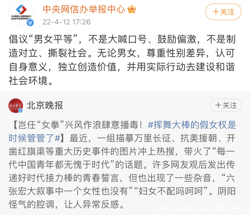 倡議“男女平等”,不是大喊口號、鼓勵偏激,不是製造對立、撕裂社會。無論男女,尊重性別差異,認可自身意義,獨立創造價值,並用實際行動去建設和諧社會環境,這才是真正有意義的“女權”。至於那些揮舞大棒、收割利益的假女權、真黑手,是時候管管了。