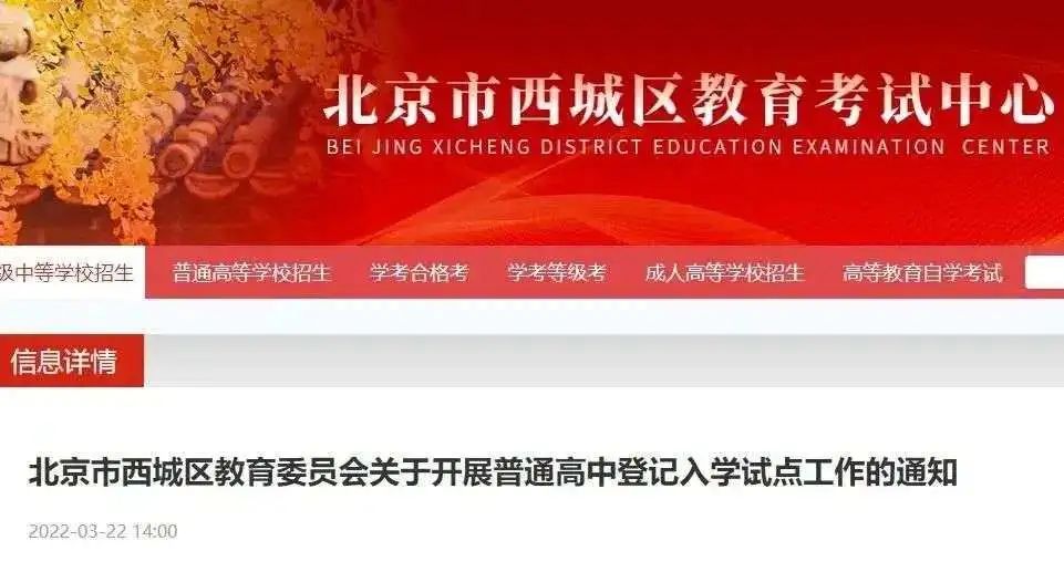 為系統推進教育評價改革,探索多元招生錄取方式,北京市教委在《關於做好2022年高級中等學校考試招生工作意見》中指出,**今年將分別從西城區、東城區拿出3校260學位、2校160學位試點,符合條件的應屆初中生可憑綜合素質評價情況獲得高中錄取,而無需再看中考成績。**這一試點在全國尚屬首例。