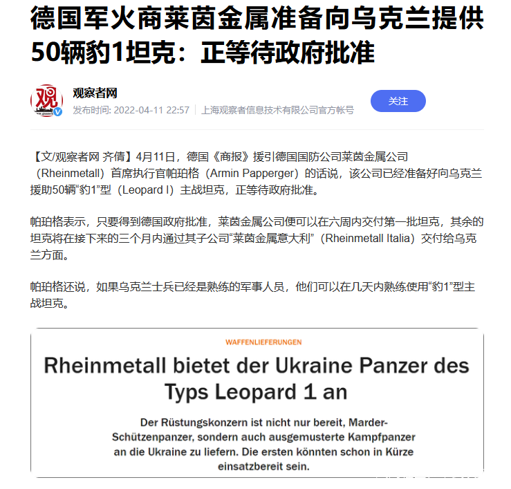 最後,這些計劃都還只是企業行提出的方案而已,德國政府根本沒有批准。也就是説,目前德國給烏克蘭提供的坦克裝甲車,還停留在“口嗨”階段,很有可能和此前的100輛步兵戰車一樣無法實行。但在所謂“布查慘案”後,西方國家會不會放寬對烏克蘭的武器支援還很難説。
