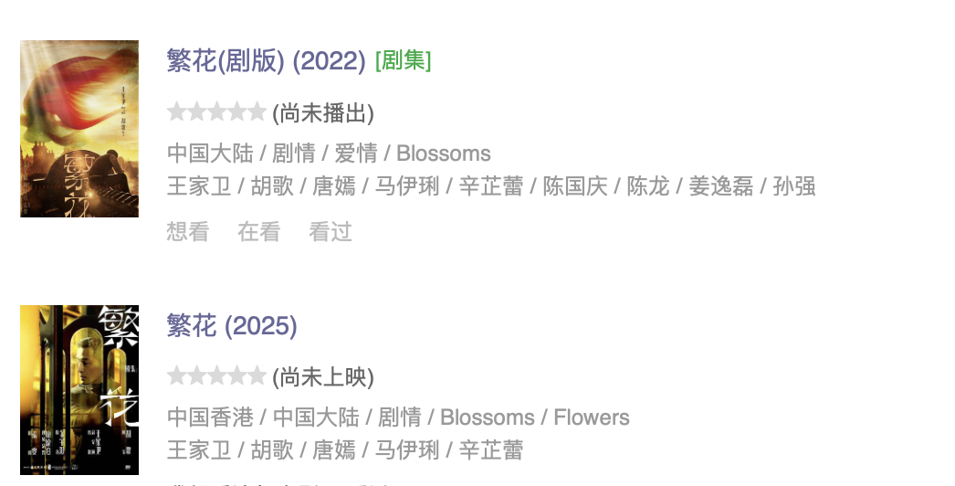 這邊剛決定2020年開拍《繁花》,那邊豆瓣條目就非常識趣地把電影上映時間排到了2025年。