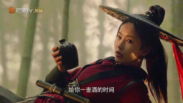 頭戴斗笠、身披霞衣的颯爽女俠半依在樹上,英氣十足地喝着一壺濁酒,隨後對不遠處的“獵物”説:“給你一壺酒的時間。”還未等觀眾反應過來,女俠便以迅雷不及掩耳的速度砍下了對方的手臂。
