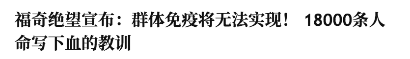 這些媒體在引述福奇等人的文章時,稱福奇“絕望宣佈:羣體免疫將無法實現”。其大意是,以瑞典為代表的部分西方國家堅持羣體免疫路線,防疫思想是“讓人們最終對新冠免疫”,整個疫情期間表現為“政府撒手不管,從來不戴口罩、不停課、不封城”,其結果是“沒有檢測,沒有口罩,醫療系統沒有能力救治病人”。而現在,這些報道稱福奇的文章意味着民眾付出了慘痛代價,這場羣體免疫試驗已經宣告失敗。