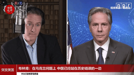 ▲2022年3月16日,美國國務卿布林肯在接受美國國家公共廣播電台採訪時妄稱,中國在烏克蘭問題上“站在歷史錯誤一邊”。