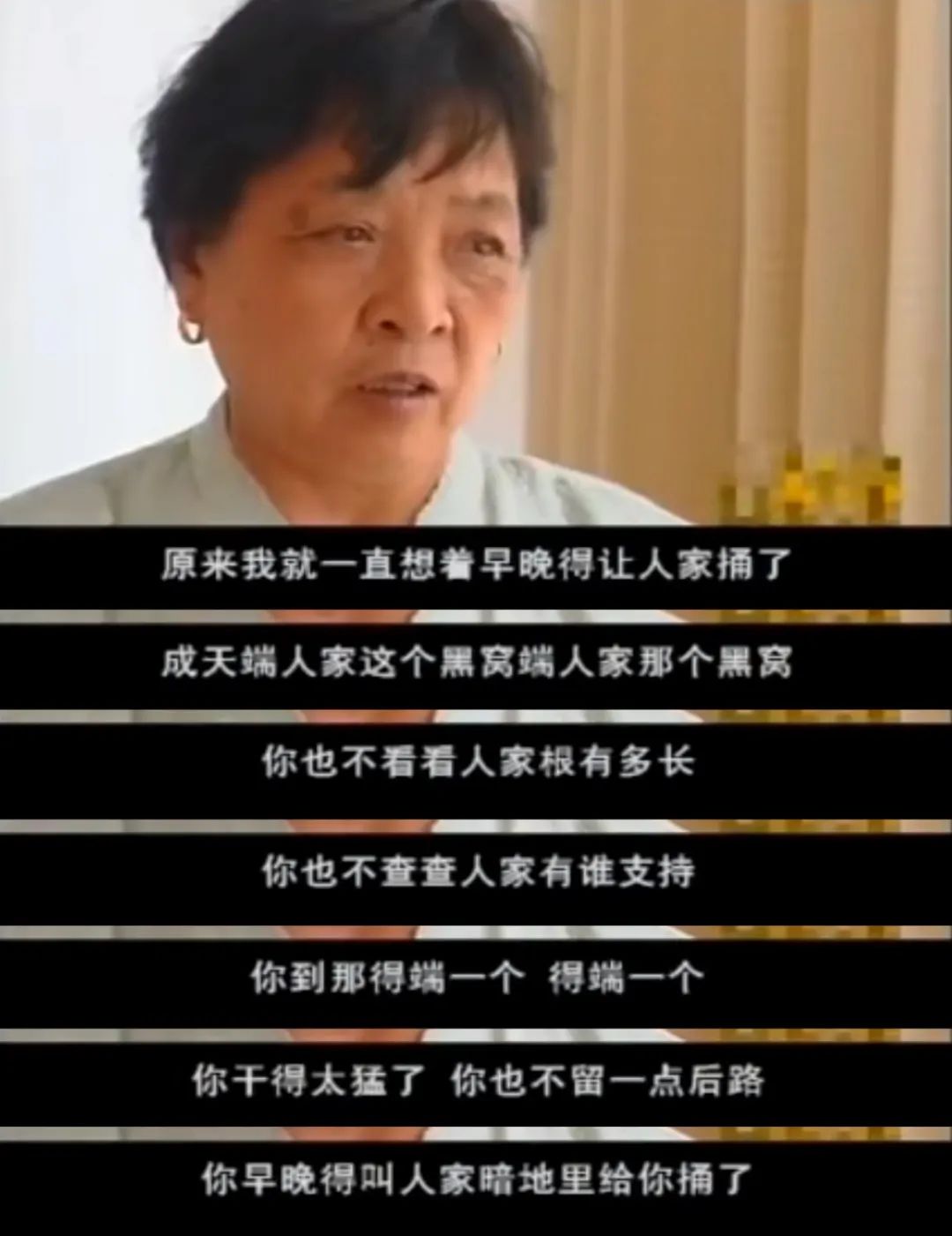 “她成天端這個黑窩,端那個黑窩,也不管人家有多大背景,幹得太猛了,不留一點後路。”