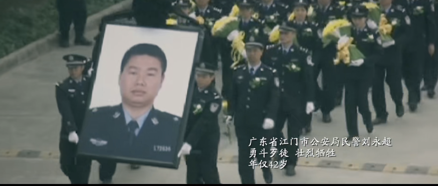 2014年,廣東省江門市民警劉永超在抓捕一名涉毒犯罪嫌疑人過程中,犯罪嫌疑人手持刀具反抗,劉永超頭部多處受傷,壯烈犧牲。
