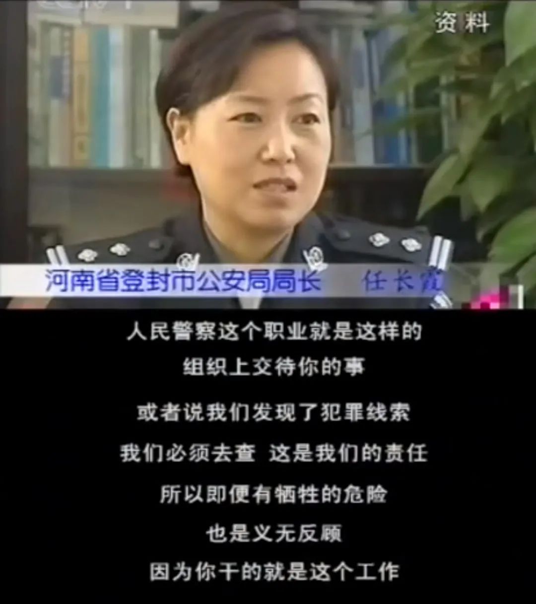 2001年4月,任長霞從鄭州公安局技偵支隊長,升任登封市公安局局長,成為河南省有史以來第一位女公安局局長。