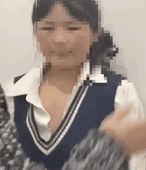 雖然視頻中受害女孩被模糊了相貌,但還是能明顯看出來,她的左衣袖髒了一大塊,襯衣釦子散落,頭髮也凌亂不成樣子。