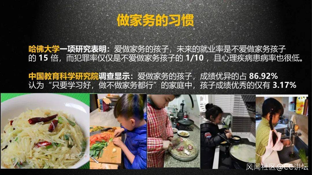 中國教育科學研究院,對兩萬多箇中國的家庭做調研,發現在那些愛做家務的孩子的這些家庭當中,孩子成績優秀的佔到了86.92%。家長説只要學習好就行了,你做不做家務沒有關係,在這樣的家庭當中,學習成績好的孩子只有3%。數據最能説明一切,背後的原理是什麼呢?