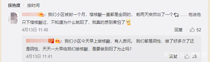 有人説自己小區一直是全陰,前兩天突然冒出來一個陽性,他也表示自己只下樓核酸過,不知道怎麼就陽了。