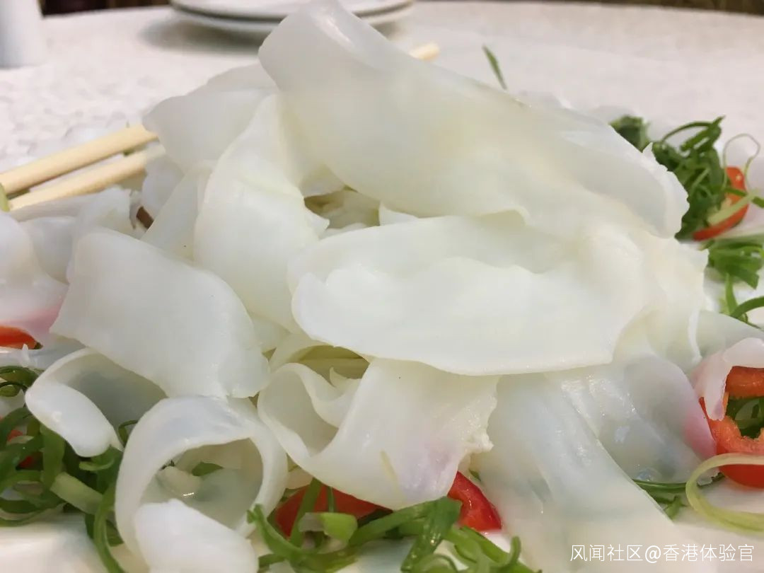 薄切墨魚晶瑩剔透,口感鮮甜爽脆,可見這道看似普通的白灼菜品對刀功和火候是十分講究的。