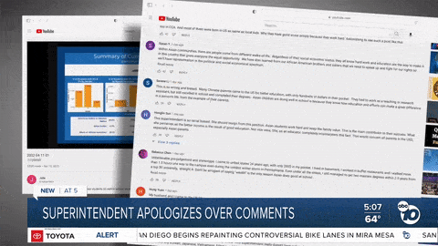 事情發生在加州San Dieguito聯合高中董事會的高層會議上,董事會理事Michael Allman拿着一份調查數據,向校監(相當於教育局長)Cheryl James Ward説道:“我們學區裏的亞裔學生羣體,無論是亞裔印度人、韓國人、越南人,還是中國人或日本人,他們的成績都很好,得到的D和F都比其他族裔少很多,他們的成績為什麼這麼好呢?”
