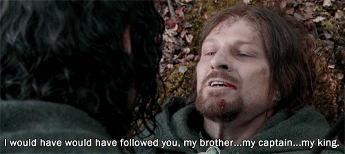 “我試着從弗羅多手中奪走魔戒,對不起,我罪有應得!永別了,阿拉貢!去米那斯提力斯拯救我的同胞吧,我失敗了。”