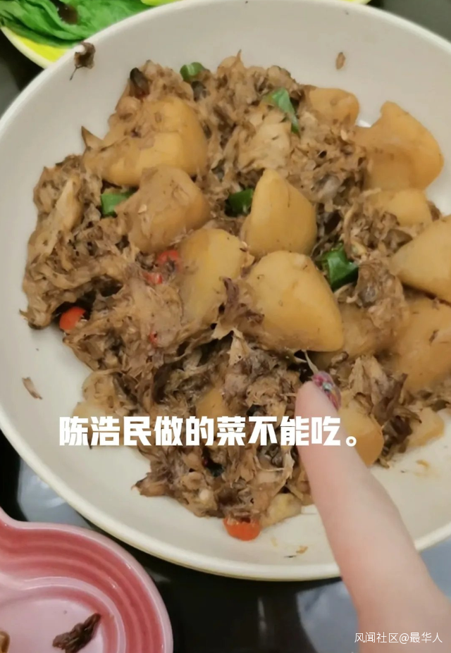 原來,陳浩民在直播時做了一道土豆燜肉,菜出鍋後,蔣麗莎直言,豬肉剁得太碎,根本不能吃。