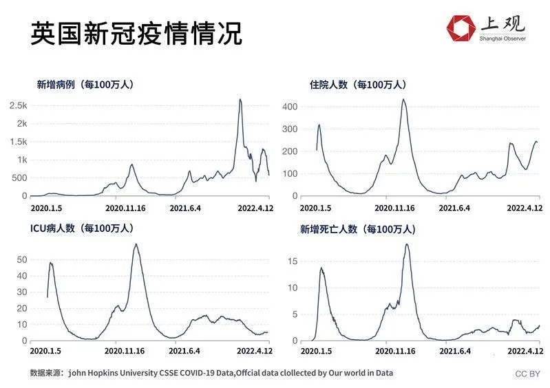 而英國目前因感染新冠病毒而住院的人數則達到2022年的最高值,超過兩萬人住院。此前在1月10號曾出現下降趨勢,在3月初降至一萬多人,但隨着防疫政策的取消,住院人數再次增加。而這不僅增加醫療系統的壓力,還將影響一部分非新冠患者的治療。
