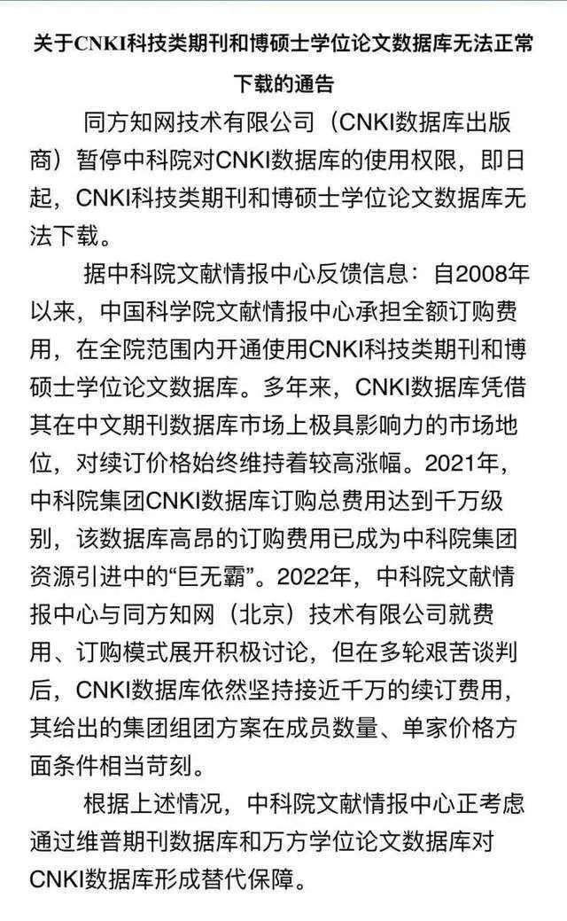 近日,“中科院因近千萬的續訂費用不堪重負,而停用中國知網數據庫”的消息在社交媒體中流傳,這事一度衝上了熱搜,在網友的評論中也炸開了鍋。