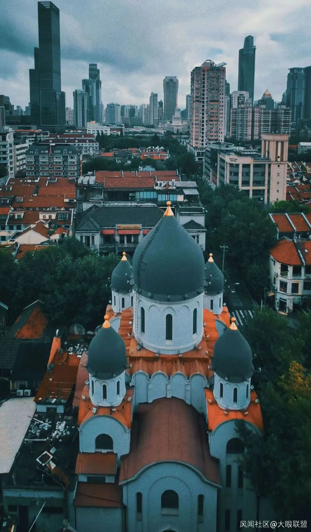 小區附近每天能見到的東正教堂,和遠處的上海天際線。