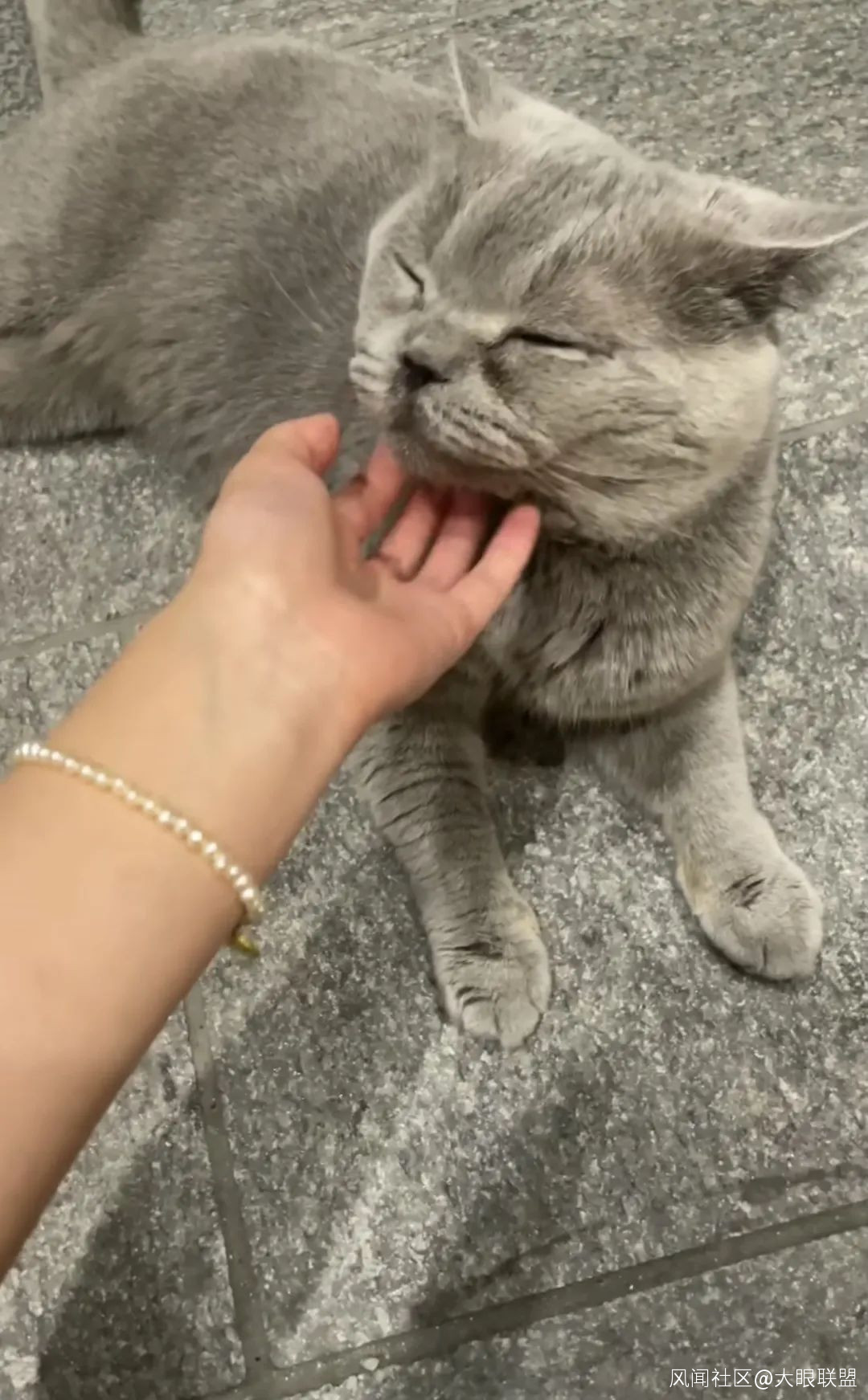 只能在小區裏玩一玩。遇上了一隻胖乎乎的藍貓,很開心,終於能在室外擼擼貓了。