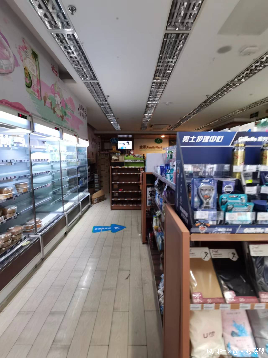 我拍的這個全家,就離我們小區十幾米。裏面用黑色的布罩着,意思是不讓進,只有外賣騎手允許進出。