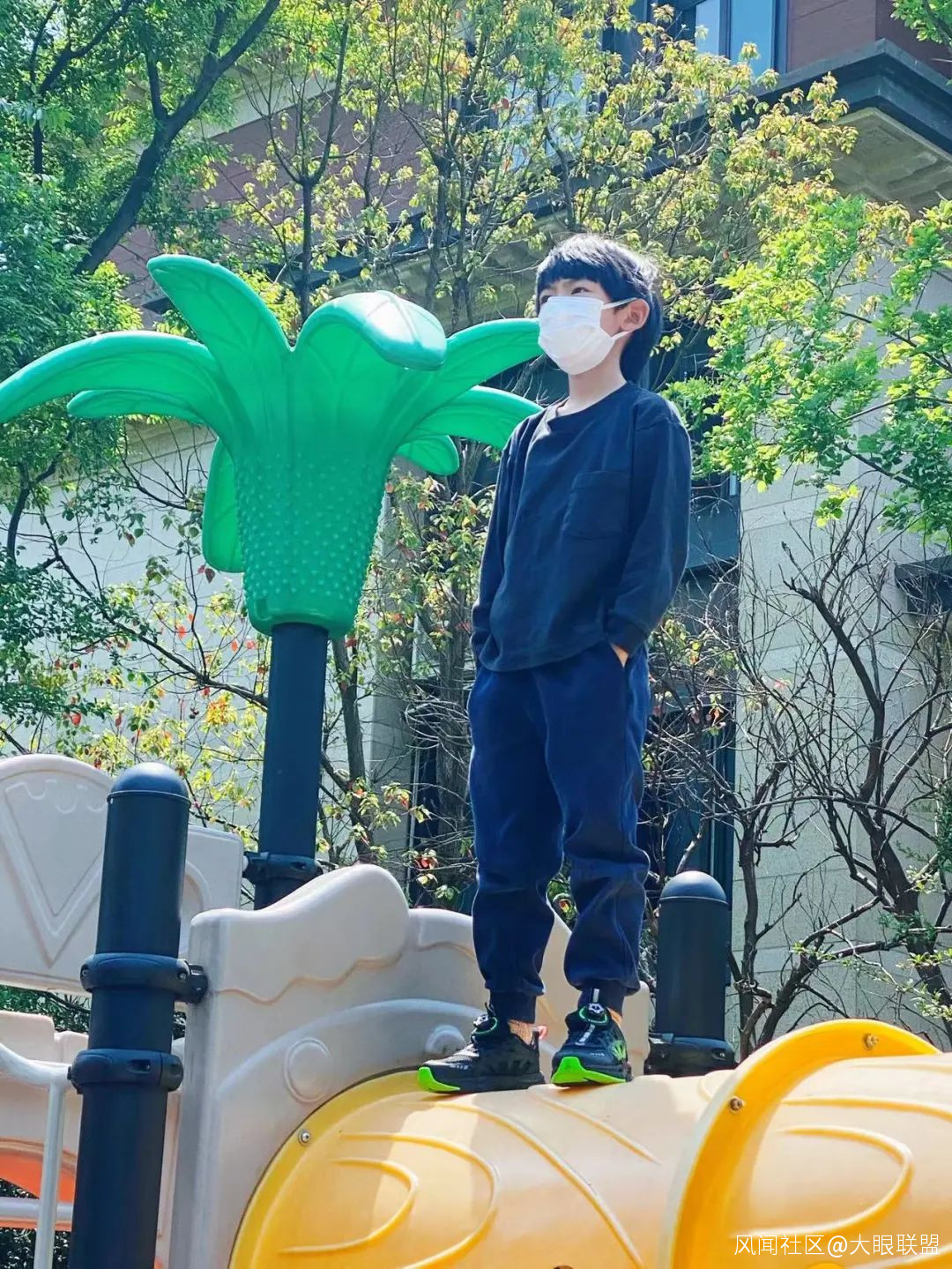 我們小區裏有個兒童樂園,平時很多小朋友在一起玩。我兒子以往也是竄上竄下,我很少看到他像這樣安靜地看着遠方。