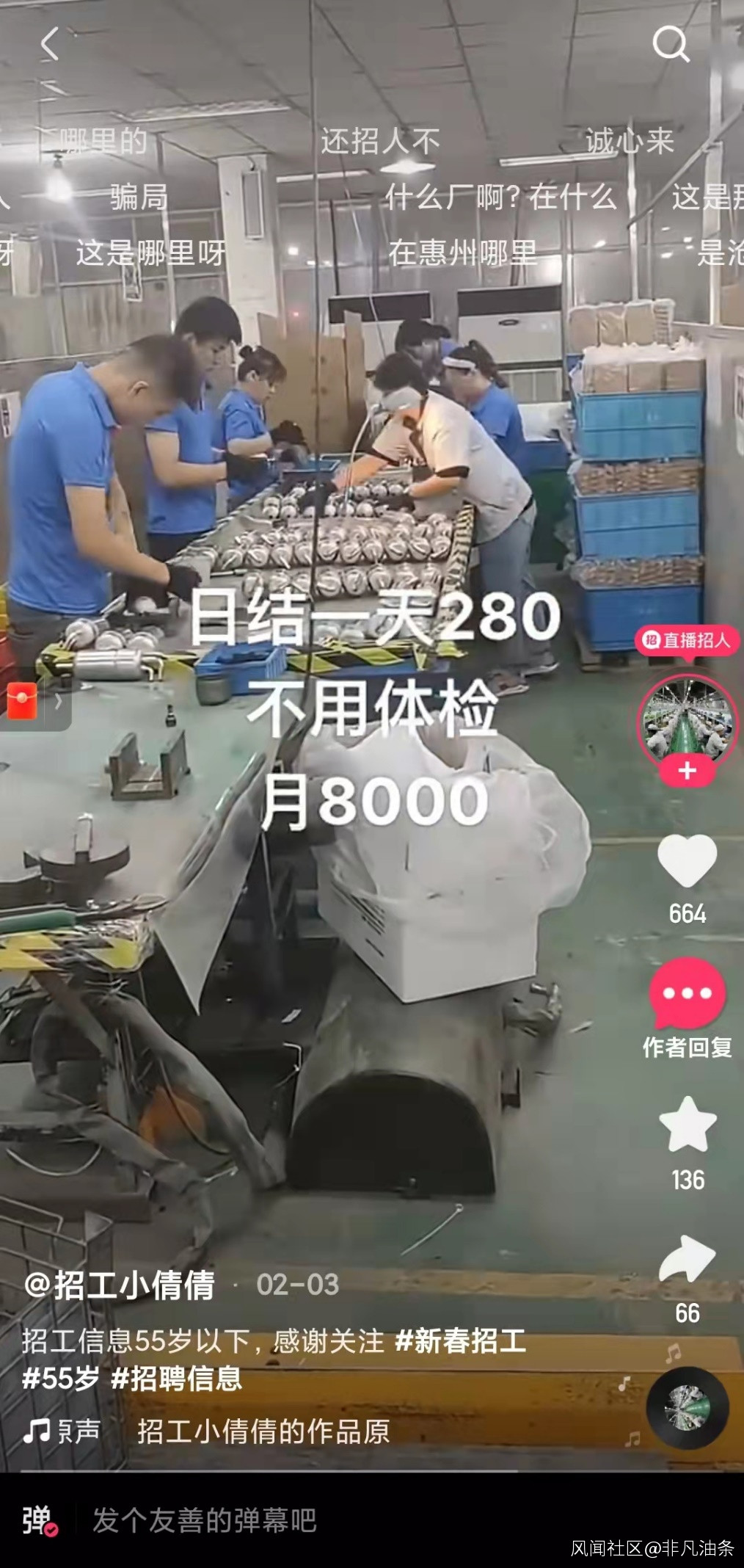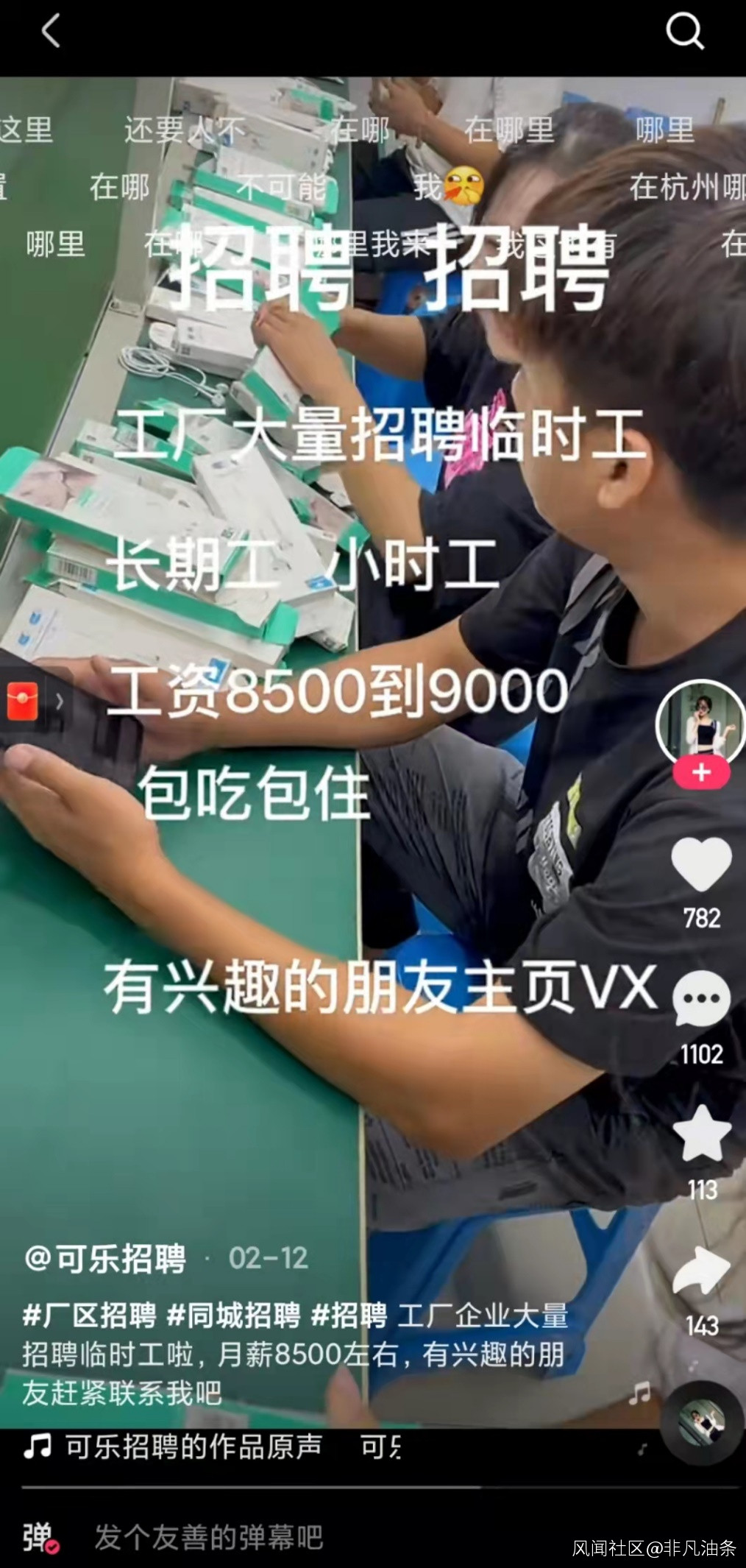 還有這種,視頻裏是工作內容和工作環境,配文字説明待遇,要留聯繫方式招工的。