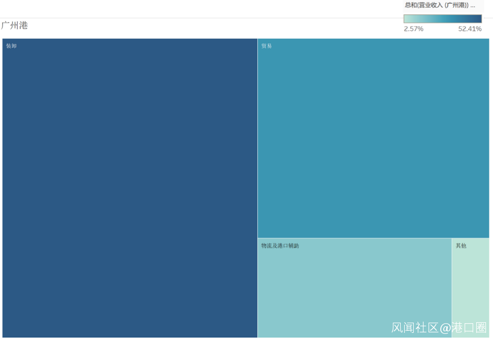 **廣州港:**作為內貿集裝箱第一大港,廣州港的裝卸業務佔整體收入比例過半,貿易和物流業務分別佔到31.72%和13.3%。