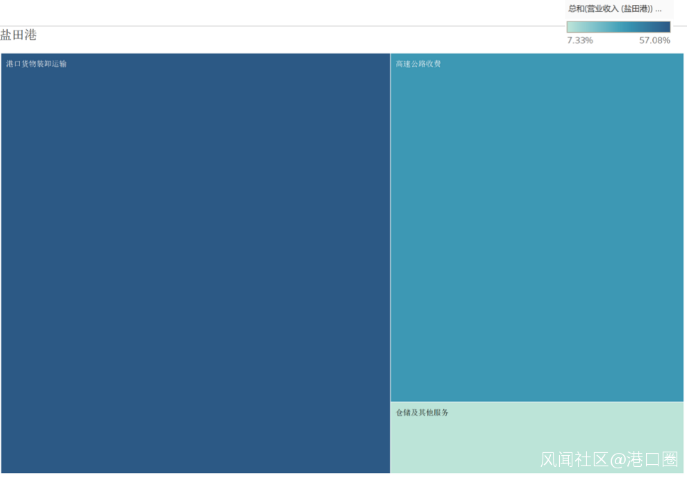 **鹽田港:**港口貨物裝卸運輸業務佔到鹽田港整體收入的57.08%,高速公路收費業務和倉儲業務分別佔比35.59%和7.33%。