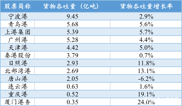 **寧波港:**作為綜合性大港,寧波港的綜合物流業務佔比36.42%,貿易銷售業務佔比8.26%,集裝箱裝卸業務佔比29.45%,鐵礦石裝卸業務和原油裝卸業務分別佔比10.29%和2.32%。