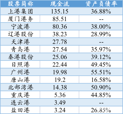 表4:港口上市企業現金流和資產負債率情況(單位:億元)