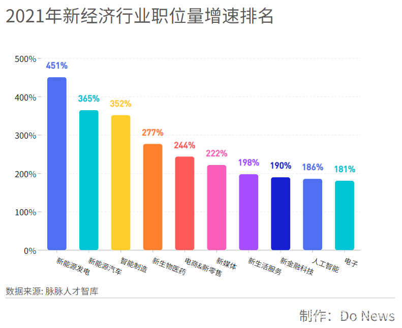 根據脈脈人才智庫數據顯示,在2021年新增職位量最多的新經濟行業中,新能源汽車行業高居亞軍,新增職業量同比增長365%。