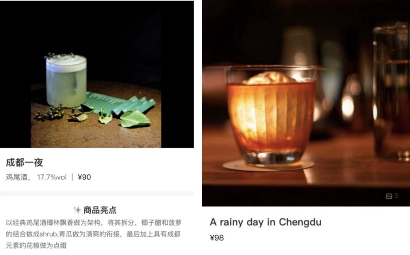 它們的共同特點是都是利用了一些經典“川菜元素”,例如花椒、辣椒等,然後在名字上賦予意向,希望飲用者能夠利用通感實現身臨其境。在“A rainy day in chengdu ”這杯酒的評論下面,甚至有顧客品出了雨後青城山的味道。