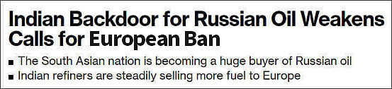 印度卻看到了商機:低價進口俄羅斯石油,高價賣給歐洲,狂賺差價。