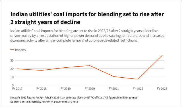 今年3月,印度從俄羅斯進口104萬噸煤炭,為2020年1月以來的最高水平。