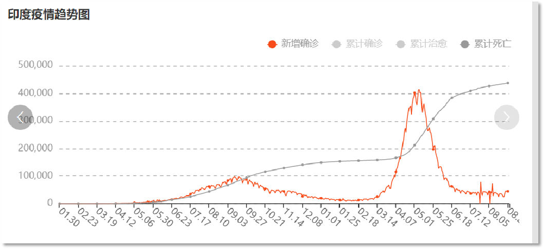 在2020年9月份那波疫情過去後,印度多個城市血清抗體調查超60%以上擁有新冠抗體,莫迪當局由此判斷印度率先達成了西方“專家”的“羣體免疫”條件,擁有了相對競爭優勢。開始在疫苗國際供給雄心勃勃的與中國競爭,並在美英始終不開放疫苗專利,組織疫苗訛詐世界的情況下,聲稱大規模參與世衞組織的疫苗共享計劃,每次放出消息都是5億、10億劑次。