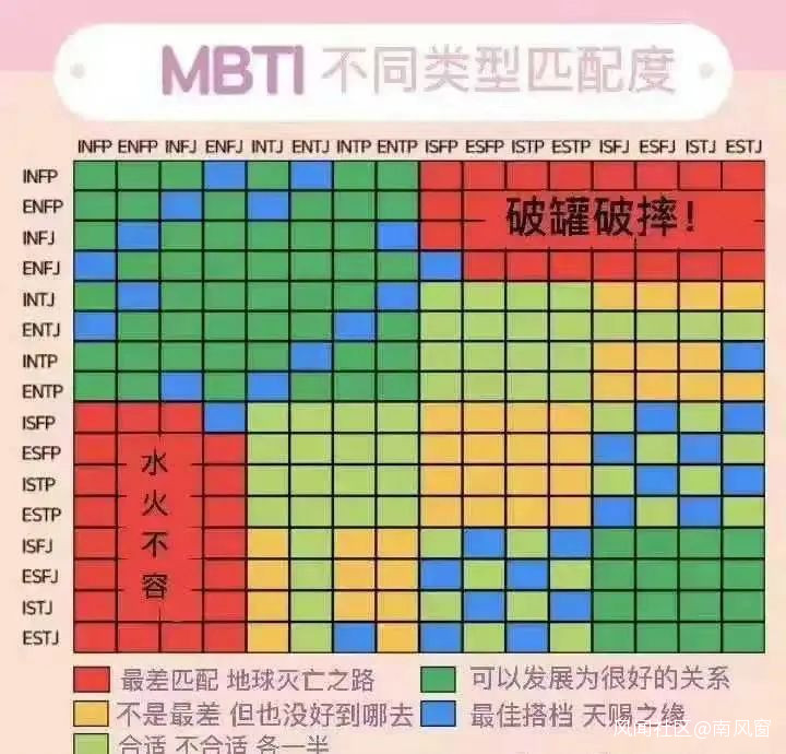 網上還流傳着MBTI不同人格類型之間的匹配程度表