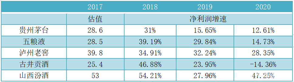 2018年中期調整之前,白酒行情的估值及未來的盈利增速: