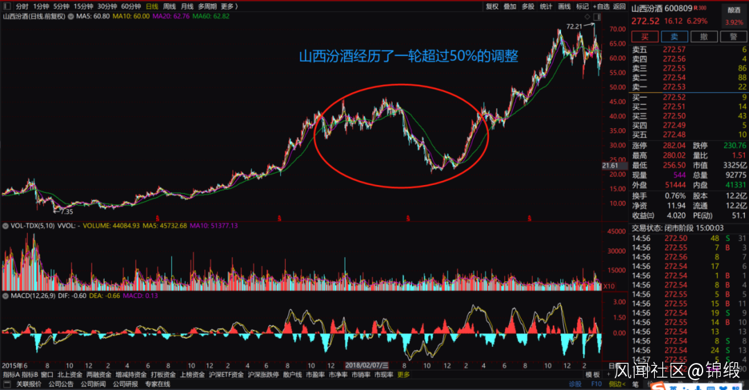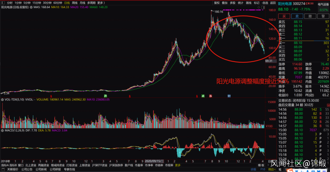 兩者相比最為合適不過,都是那個時間段的時代弄潮者。而目前光伏的中期調整則類似於2018年白酒行情的中期調整過程。