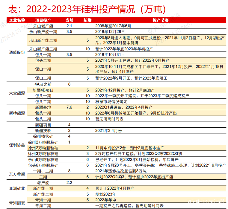 但實際上,我們看到,2022年一季度因國內和海外需求旺盛,導致一季度硅料即時新增產能不足是主要原因。