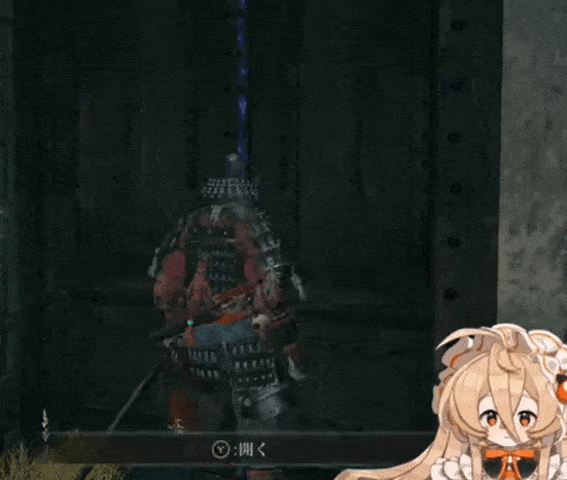在這場分秒必爭的速通中,きよしちゃん先是被地上的椅子卡住無法前進,在氣急敗壞地砍壞了面前的椅子之後,他又進行了一次意義不明的跳躍與後撤步。而在這一連串的迷惑行為後,他才終於做出了看起來像是速通技巧的操作——他打開地圖,在某處放置了一個座標點,並推開面前的大門,而他操控的角色在打開大門的瞬間突然開始起飛。