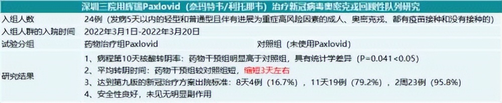深圳三院分享了新冠患者(奧密克戎)抗病毒治療臨牀案例分享,包括使用輝瑞口服新冠小分子藥物Paxlovid(奈瑪特韋/利托那韋)的回顧性隊列研究和默沙東口服新冠小分子藥物Molnupiravir(莫那匹韋)的隨機對照研究。