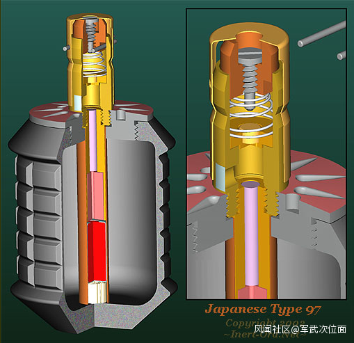 10式和91式雖然可以手擲,但是從引信時間就可以看出,通過步槍和擲彈筒發射才是其主要用途,而為了有一款正兒八經、不會被膽大的撿起來扔回的手榴彈,日軍又在91式手榴彈的基礎上再次改進,這才有了“香瓜手雷”——97式手榴彈。