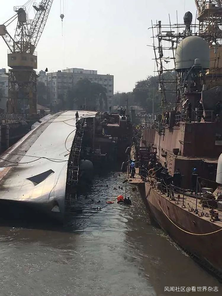 而護衞艦“貝特瓦”號大修完畢後,就在孟買造船廠的船塢中發生了弔詭的側翻事故——事發時雖無風浪,但“貝特瓦”號還是倒了下去。