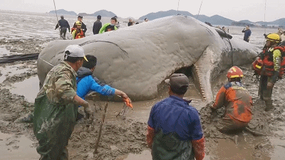 事實上這條抹香鯨只是近年來在中國沿海一系列鯨魚擱淺事件中的一個例子。