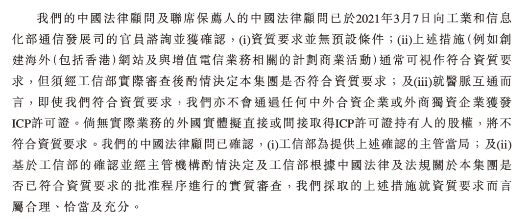 -如後續監管部門對外方投資者有其他細則的要求或隱形的“門檻”,則發行人採用100%VIE架構仍有必要性,但在招股書披露的對資質要求的論證邏輯可能需要調整,也需關注如後續聯交所根據外資電信新規的落地情況進一步調整HKEX-LD43-3或其他規則可能產生的影響;