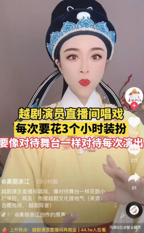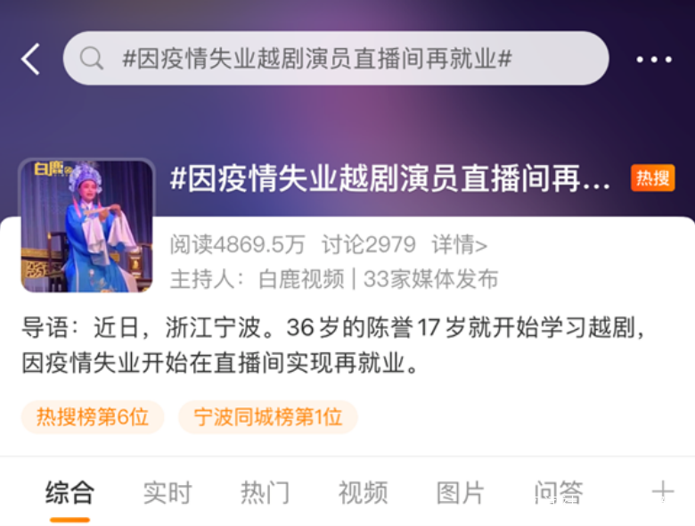 陳譽作為民營劇團演員直播間再就業的故事,感動了無數網友,還登上了熱搜。