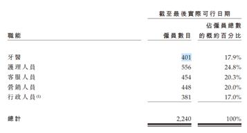 難以想象的是,牙博士的牙醫比營銷人員少。截至最後報告期內,公司的牙醫只有401名,甚至少於客服人員454名與營銷人員448名。