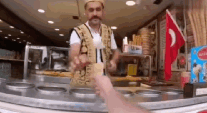 在這之外,抖音上最火的土耳其元素,應該是土耳其冰淇淋,花樣百出套路不斷的雜耍式賣冰淇淋,讓顧客們一邊上火一邊又樂在其中。