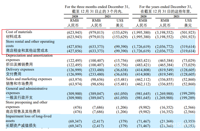 至於成本嘛,隨着店鋪數量從 2020 年的 4803 家店鋪增加到 2021 年的 6024 家,成本自然也要上升。